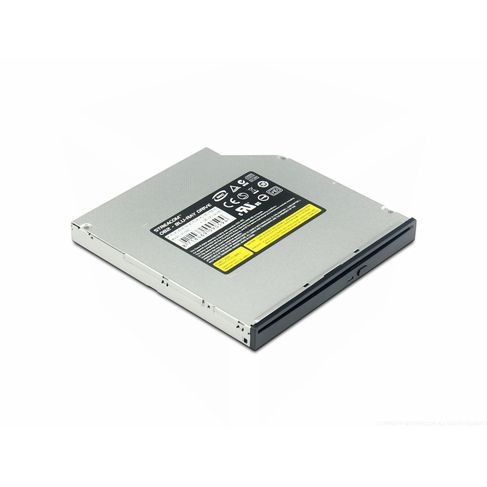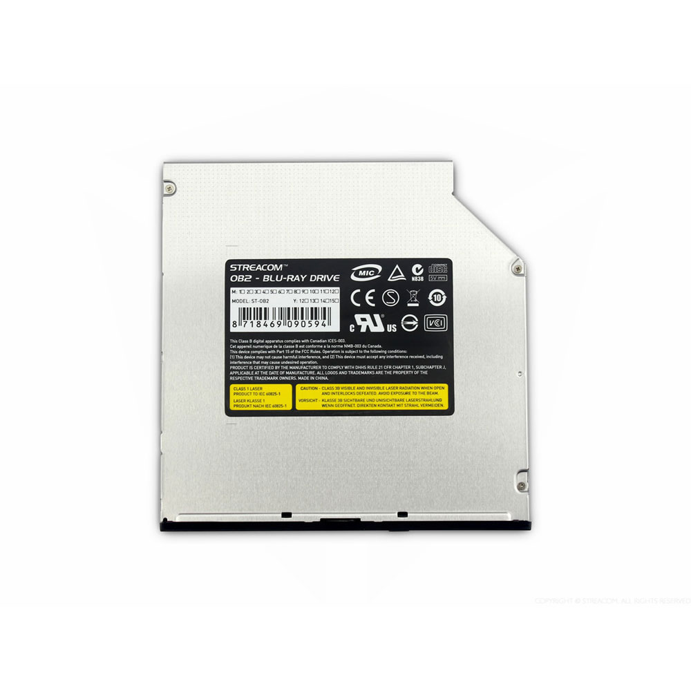 The OB2 Blu-ray drive fits all Streacom cases that have a universal eject button. It supports Blu-ray reading and DVD/CD read/write capabilities and uses a disk slot loading mechanism to fit it in the case.